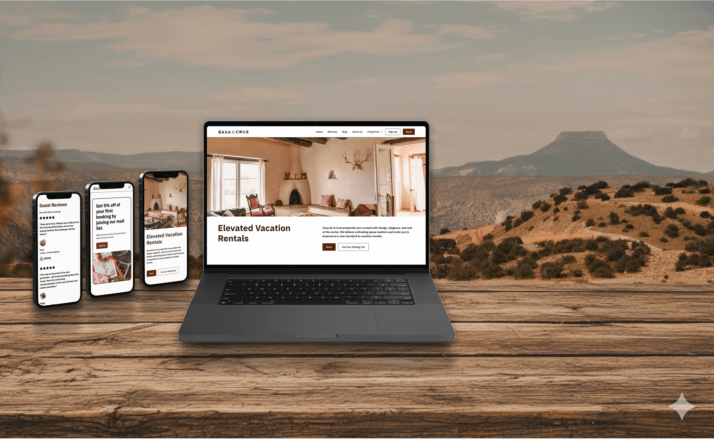 I designed the logo to embody the spirit of the Hispano Mountain West. Its colors are drawn from the adobe palette of the home itself, grounding the brand in place. The mark reflects the region’s rich cultural heritage while carrying a tone of elegance and luxury.